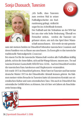 Düsseldorfer Anzeiger: Fußball-Weltmeisterschaft Deutschland 2006: "Bauchtänzerin Soraya drückt die Daumen für die tunesische Fußball-Nationalmannschaft" -