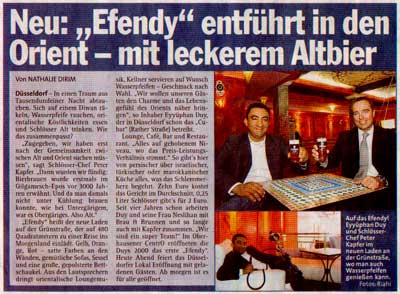 Express Zeitung: "Neu: "Efendy" entführt in den Orient - mit leckerem Altbier"; Pressemeldung zur Neueröffnung Restaurant Efendy in Düsseldorf