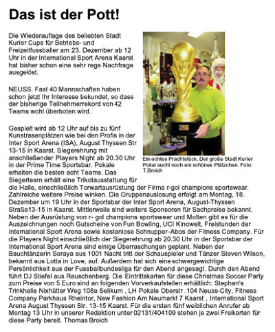 Kaarster Stadtspiegel / Extra Tipp Kaarst: "Das ist der Pott!"; Pressebericht zum Stadt-Kurier Cup Neuss / Kaarst 2006