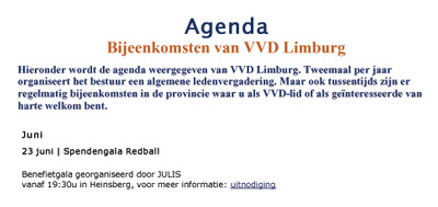 VVD (Volkspartij voor Vrijheid en Democratie) Limburg / Niederlande: "Spendengala Redball - Benefietgala georganiseerd door JULIS"; Pressebericht zur Redball Spendengala 2007