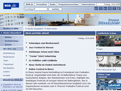 WDR Radio | Hörfunk - Studio Düsseldorf: Nachrichten Rhein und Ruhr Aktuell: "Ballon-Festival in Moers" - Pressebericht zur Bauchtanz-Show beim Ballonglühen auf dem 9. Moerser Freiballonfestival [Montgolfiade] mit 90 Bauchtänzerinnen unter der künstlerischen und organisatorischen Gesamtleitung von Bauchtänzerin Soraya